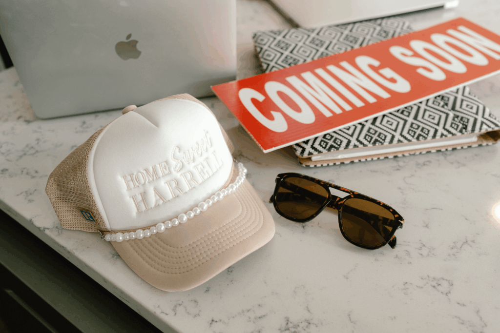 In the YouTube video, I show that I used my Godox flash to help bring in some extra light and make sure their smiles we extra sharp! They brought a few props including denim jackets, branded hats, blankets, and more. We had a shot list ready that we referenced throughout the shoot to make sure we got exactly what they needed! Overall, we got bright, airy, and homey photographs to help build the Home Sweet Harrell visual brand.